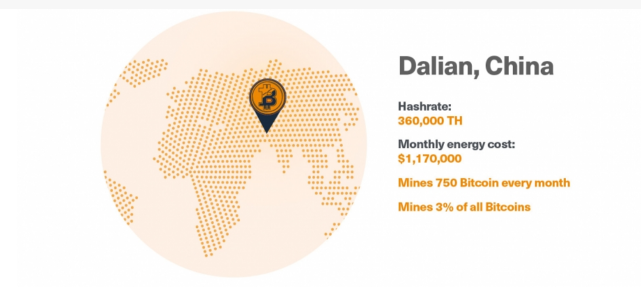 Dalian Crypto Mining Company headquarter: China. The address in China: Huangpu Rd, Ganjingzi District, Dalian, Liaoning, China, 116086 (data center location).